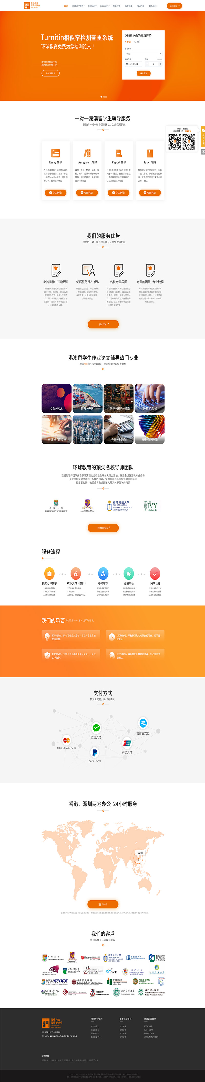 Project Description 环球教育拥有完善的港澳留学辅导机制,面对每一篇Essay都注重每个细节。留学生提供论文、写作辅导及论文查重检测的服务,已经拥有10年的经验,口碑质量有保障。 Official website address 徐汇http://essay.hkyauka.com/index.asp I want to share